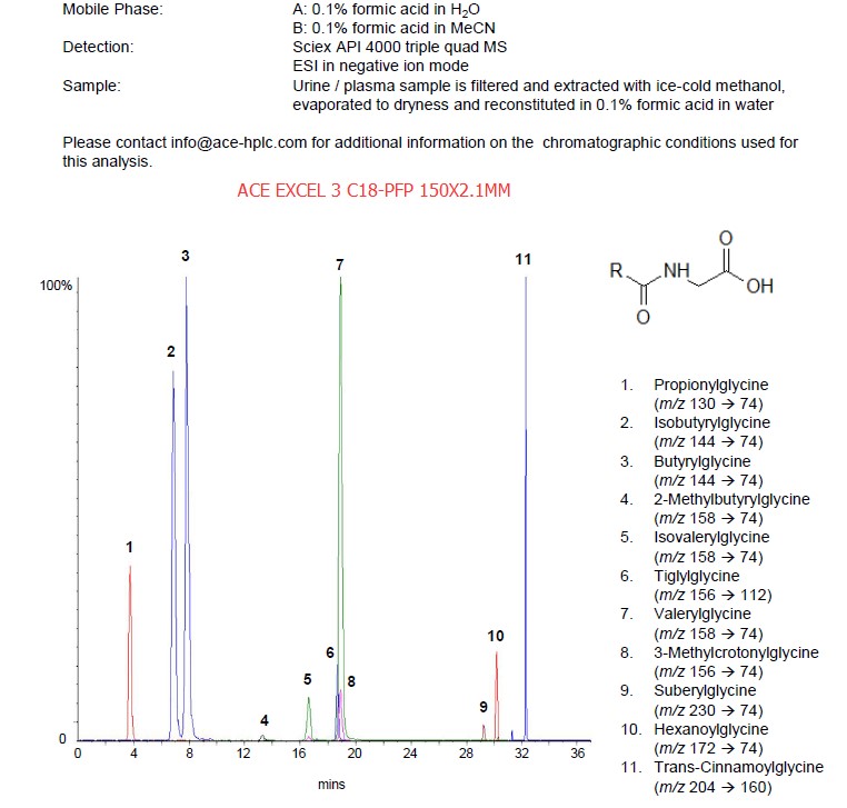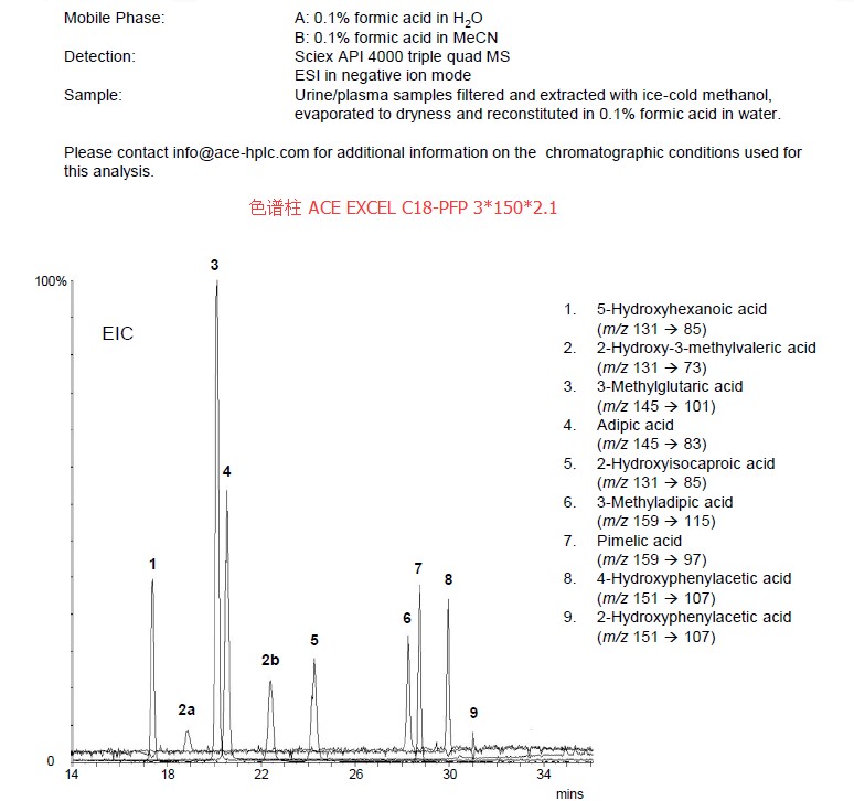 此為在C18末端鍵合PFP(五氟苯基)的特色固定相,可以在維持疏水性的同時增強(qiáng)極性化合物的保留,比如: