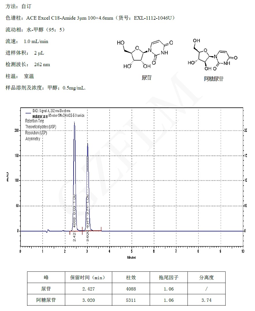 2.尿苷和阿糖尿苷的分離