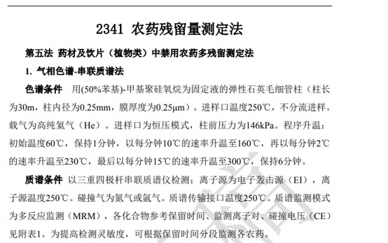 擬修訂《中國藥典》2015年版四部“0212藥材和飲片檢定通則”,并擬在“2341農藥殘留量測定法”中新增“第五法藥材及飲片(植物類)中禁用農藥多殘留測定法”,在檢定通則中規(guī)定了33種禁用農藥不得檢出(不得過定量限)。