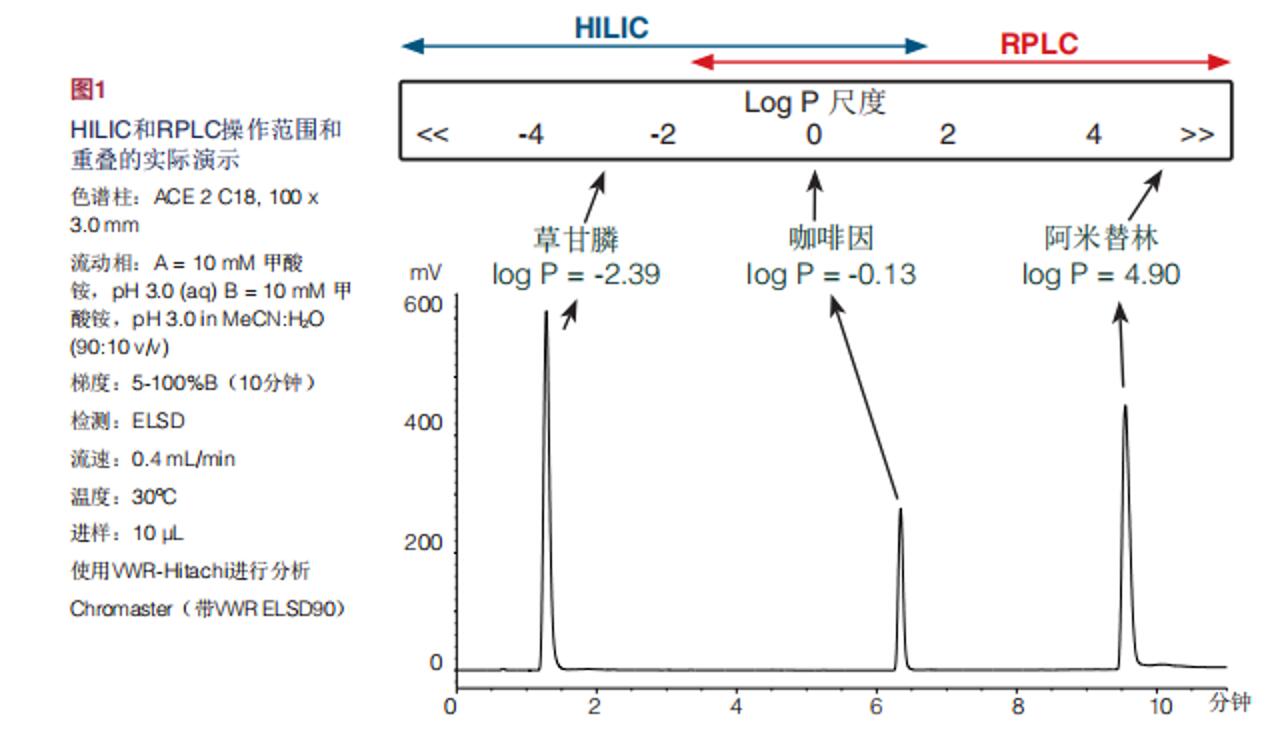 HILIC為親水大極性分析(LogP為負(fù)值)物提供了 RPLC的替代選擇,無需使用離子對試劑即可實現(xiàn)保留分離。