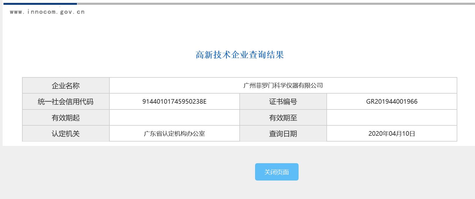 根據(jù)國家《高新技術(shù)企業(yè)認定管理辦法》和《高新技術(shù)企業(yè)認定管理工作指引》的相關(guān)規(guī)定,廣州菲羅門科學儀器有限公司被認定為國家級高新技術(shù)企業(yè)。 菲羅門高新企業(yè)證書編號:GR201944001966