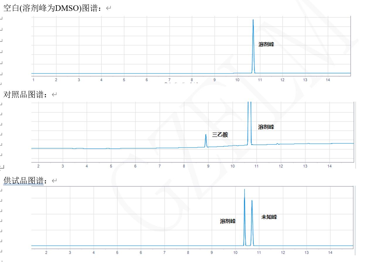 評價(jià):此款氣相柱,在本樣品溶劑殘留測試中,對溶劑峰 DMSO,以及TEA 峰,均有很好優(yōu)于其它柱的峰形。且在供試品分析中,溶劑峰與未知峰完全分離,峰形優(yōu)秀。
