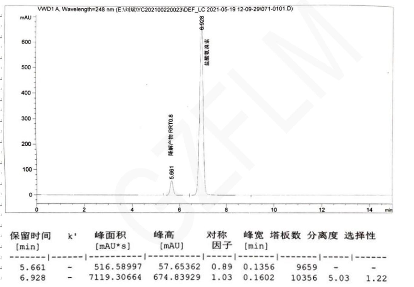 客戶評價:鹽酸氨溴索與降解產(chǎn)物峰(相對保留時間約為 0.8)的分離度大于 4.0,符合標(biāo)準(zhǔn)要求。本案例及評價來自某省級藥檢所