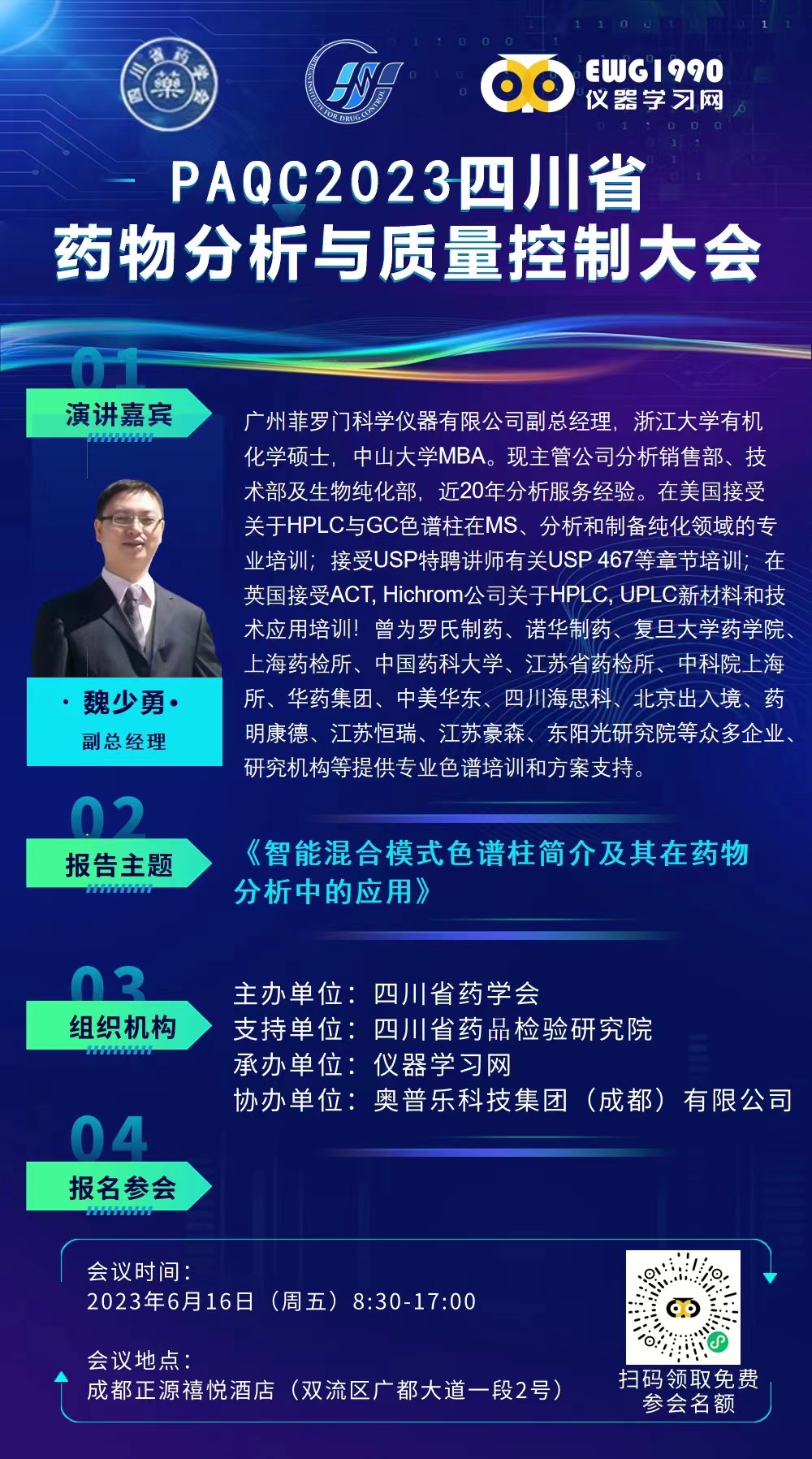 2、會議時間:2023 年6 月16 日上午8:30-下午17:00,時長一天