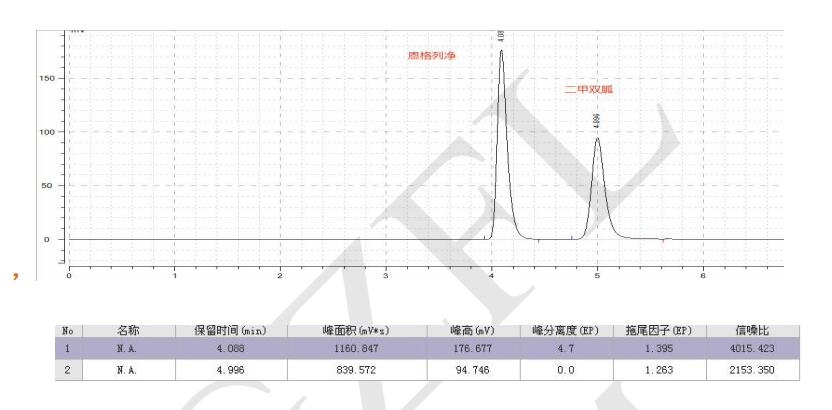 方法說(shuō)明:二甲雙胍與恩格列凈為常用降糖藥,Comixsil HCS 固定相可在簡(jiǎn)單流動(dòng)相條件下實(shí)現(xiàn)對(duì) 二者的同時(shí)分析。分離度大且柱效良好。
