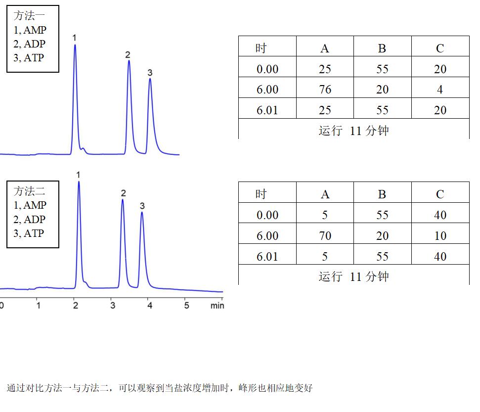 1. **色譜圖**: - 通過色譜圖可以直觀地看到AMP、ADP和ATP的分離情況。每個(gè)化合物在色譜圖上都有一個(gè)特定的保留時(shí)間,這是其身份識別的關(guān)鍵依據(jù)。