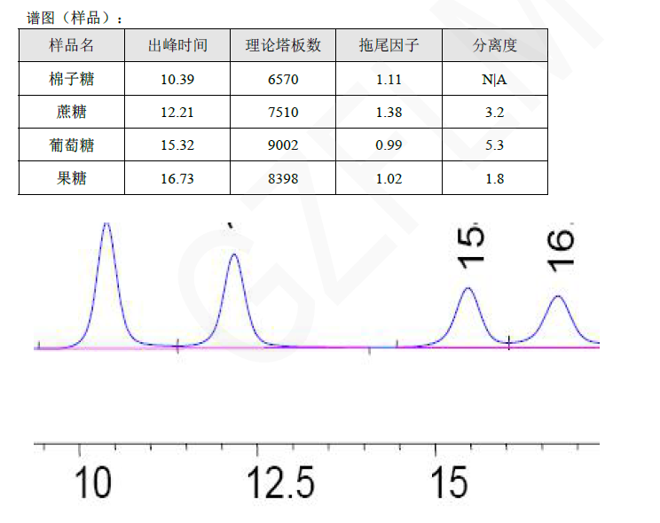 流動相:去離子水。這是最簡單的流動相選擇,適用于大多數(shù)糖類的分析。 流速:0.5 mL/min。這個(gè)流速可以確保樣品在色譜柱中有足夠的停留時(shí)間,從而達(dá)到良好的分離效果。 柱溫:80℃。適當(dāng)?shù)闹鶞乜梢蕴岣叻蛛x度和色譜柱的穩(wěn)定性。 檢測器:示差折光檢測器(RID),檢測溫度為40℃。示差折光檢測器對糖類等無紫外吸收的物質(zhì)具有較高的靈敏度。 三、系統(tǒng)適用性試驗(yàn) 在進(jìn)行分析之前,需要進(jìn)行系統(tǒng)適用性試驗(yàn)以驗(yàn)證色譜系統(tǒng)的性能。這通常包括:
