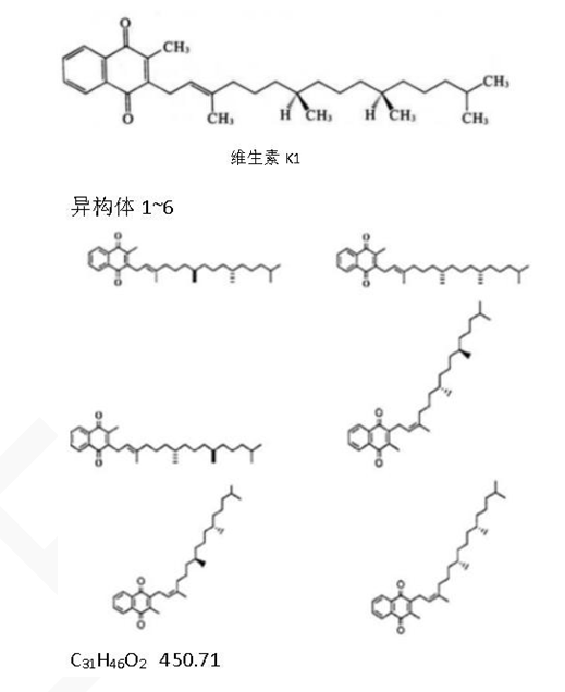 維生素K1,又名植物甲萘醌、葉綠基甲萘醌、葉綠醌,化學名稱為2-甲基-3-植醇基-1,4-萘醌,是一種多環(huán)芳香酮,也是一種脂溶性維生素。它對于肝臟合成凝血因子Ⅱ、Ⅶ、Ⅸ、Ⅹ至關重要,在臨床上主要用于防治因維生素K缺乏所致的出血癥,如新生兒出血、長期口服抗生素所致的出血癥等。關于維生素K1及其異構體的手性拆分,以下進行詳細分析: