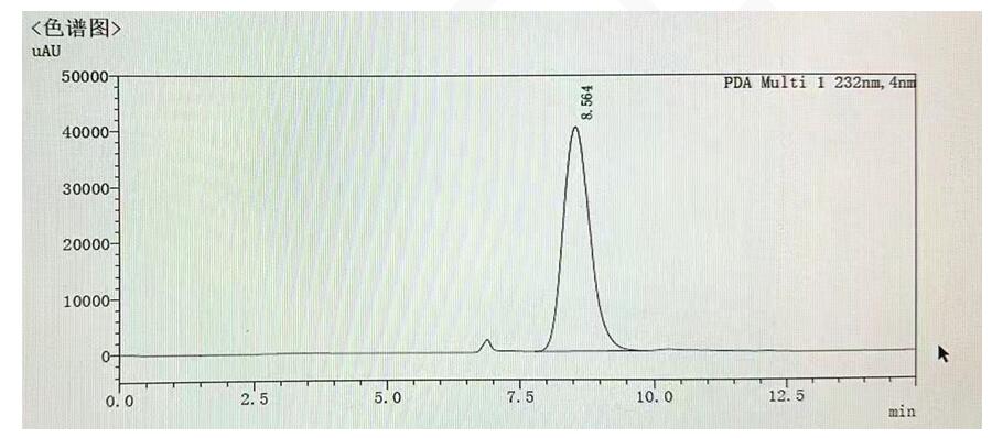 App ID: FLM-M250001 MARS MCa 柱對(duì)醫(yī)藥輔料及食品中透明質(zhì)酸鈉含量的測定 色譜柱:MARS MCa 10u 7.8*300mm (貨號(hào):FMH-1130-KONU) 流動(dòng)相:1%磷酸 流速:0.6 mL/min 檢測波長:232nm 柱溫:40℃ 樣品濃度:1mg/ml 進(jìn)樣量:20ul 方法參照?qǐng)F(tuán)體標(biāo)準(zhǔn): T/SNHFA 012-2021 食品中透明質(zhì)酸鈉含量的測定 稀釋劑:磷酸鹽緩沖液(pH6.0):稱取磷酸二氫鈉(5.1.1)27.4 g、磷酸氫二鈉(5.1.2)8.8 g,置1000 mL 容量瓶中,加水稀釋至刻度,搖勻,得 0.2 mol/L 磷酸鹽緩沖液。 檢測原理:來源于細(xì)菌的透明質(zhì)酸酶在適宜條件下,作用于透明質(zhì)酸鈉β-1,4 糖苷鍵,通過β消除反應(yīng)生成不飽和透明質(zhì)酸鈉雙糖(ΔDiHA),采用高效液相色譜法測定,外標(biāo)法定量。 色譜圖: