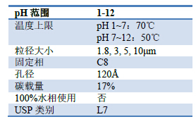 - 由于 C8 比 C18 具有更高的官能團密度,因此具有更好的構(gòu)造識別能力,可以有效分離不易用C18 分離的異構(gòu)體和類似物