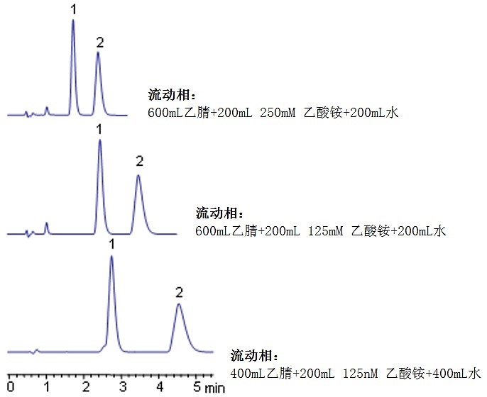 這些化合物的洗脫通過(guò)流動(dòng)相中離子的強(qiáng)度和乙腈的比例來(lái)控制。