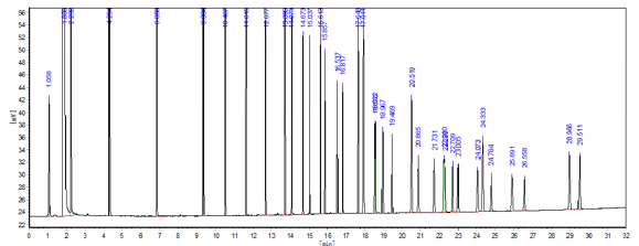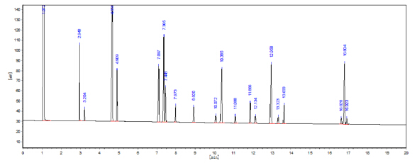 實驗證明采用菲羅門的 FB-FameWax 氣相色譜柱能夠很好的分離魚油中相應目標成份。