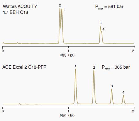 當(dāng)使用ACE Excel UHPLC色譜柱進(jìn)行快速方法開發(fā),且該方法必須可轉(zhuǎn)移到HPLC時,易擴展性則顯得特別有價值。